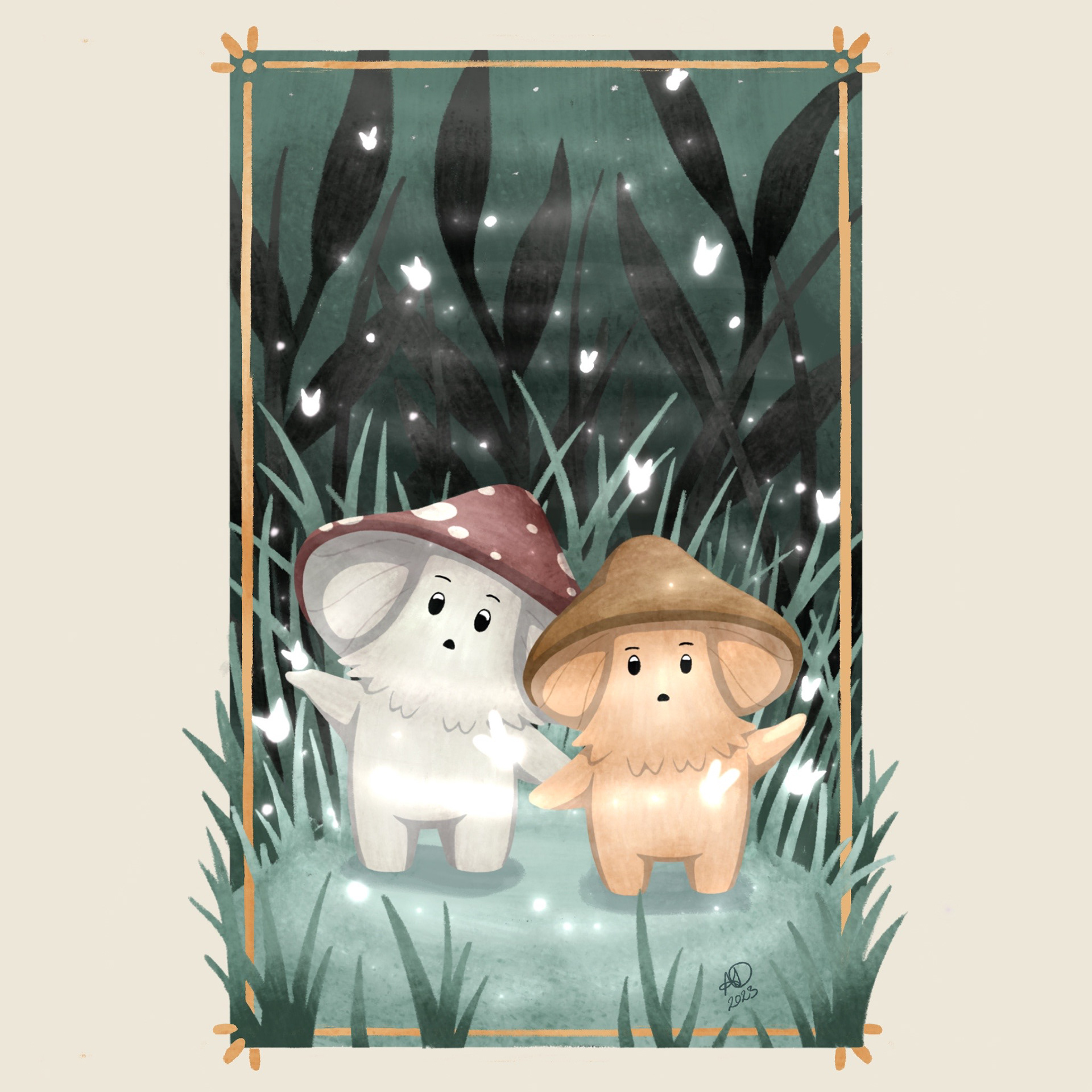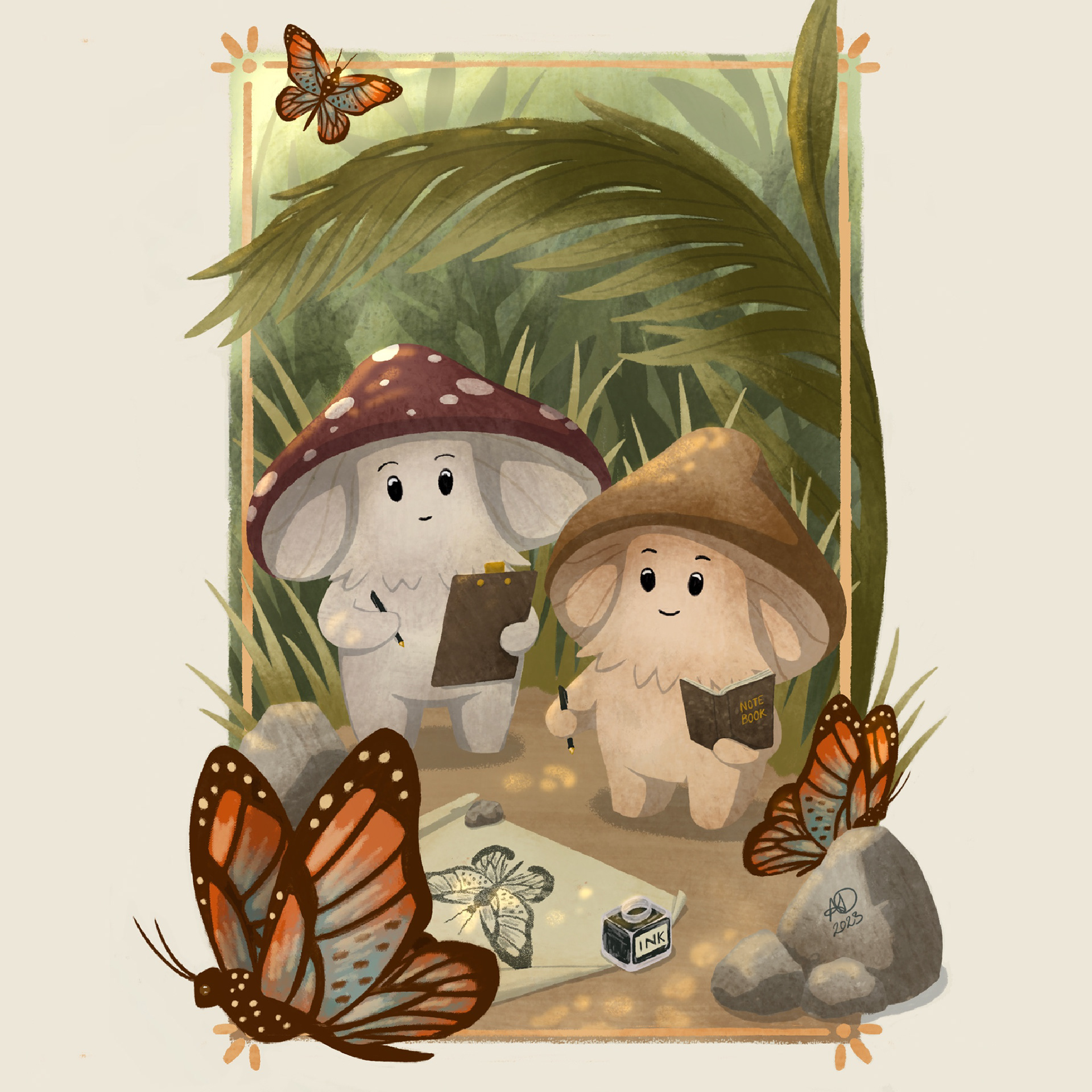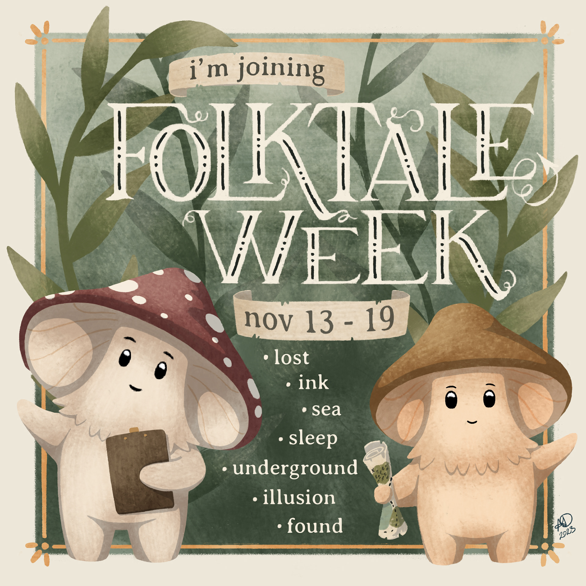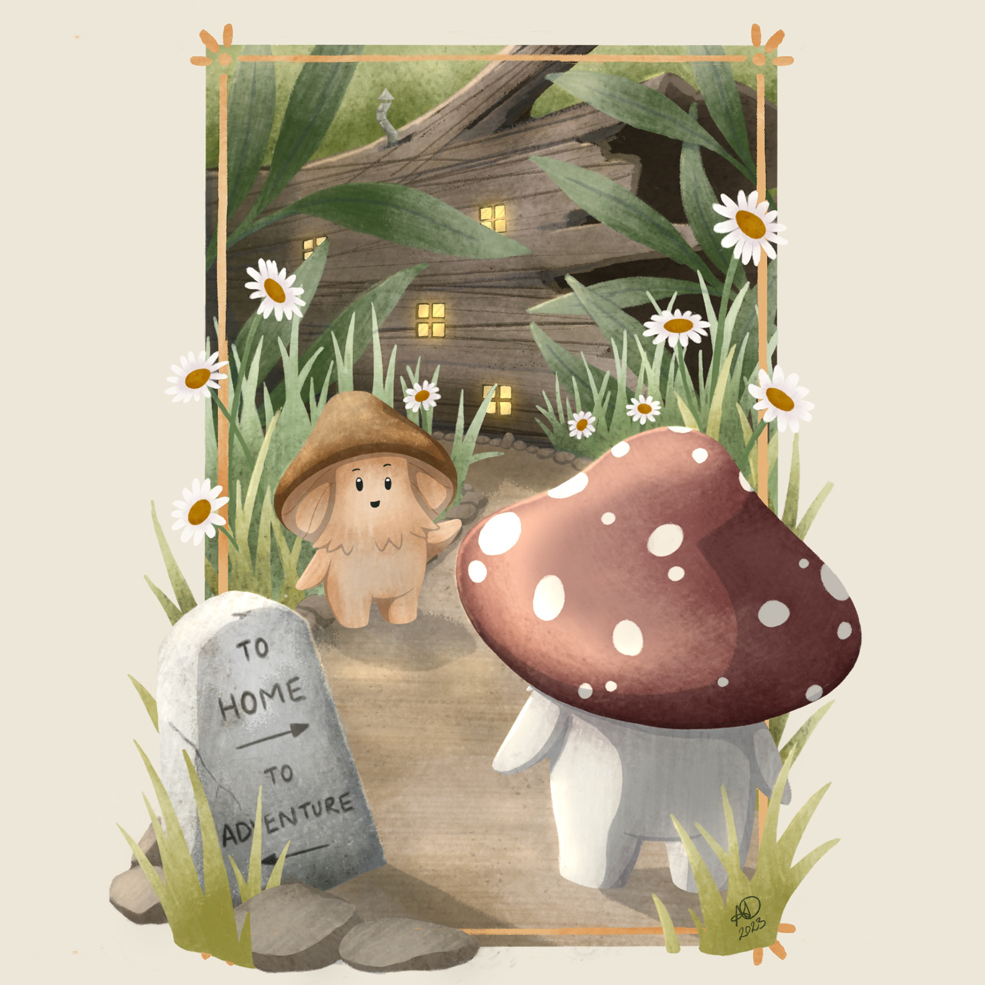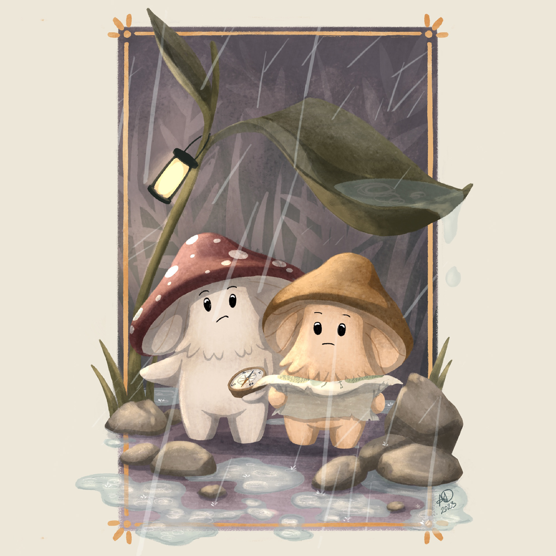 Folktale week is a week long art challenge on instagram that encourages artists to share stories and explore character creation and visual storytelling. I decided to take part this year and take a couple mushroom characters on an adventure to find their way home.
